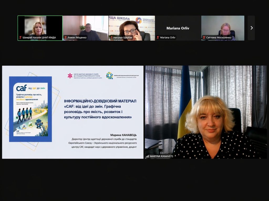 23 квітня 2026 року під час засідання Науково-експертної ради Вищої школи публічного управління директор Центру адаптації державної служби до стандартів Європейського Союзу Марина Канавець презентувала новий комунікаційний продукт — графічну розповідь «CAF: від ідеї до змін».