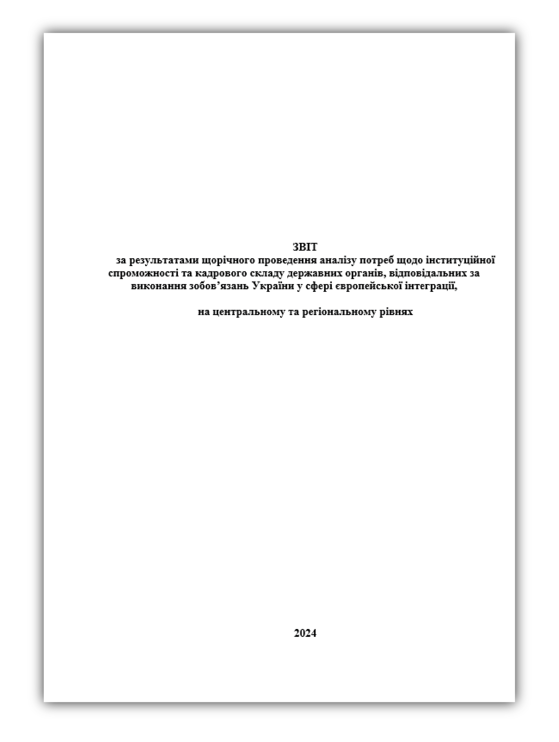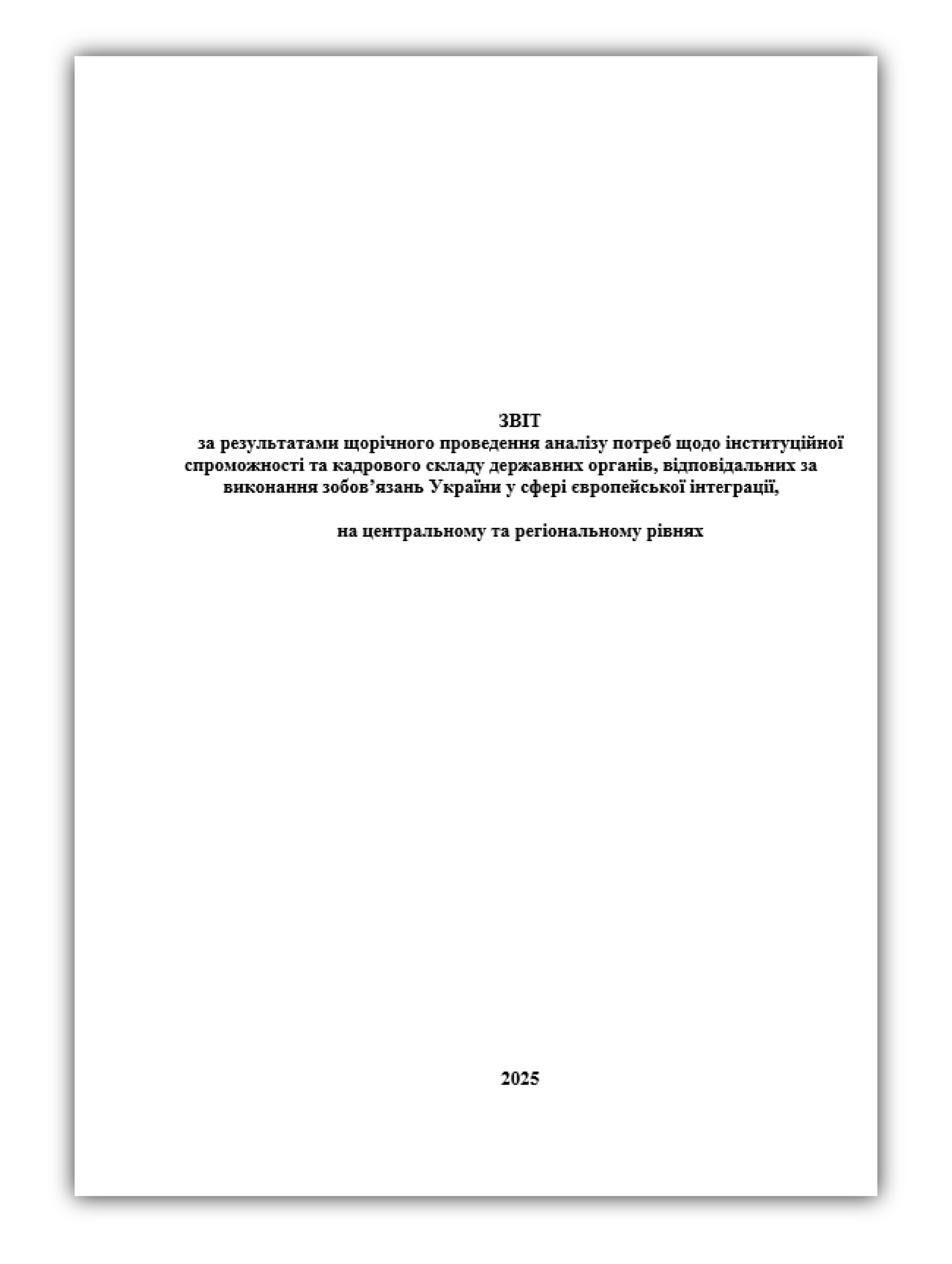 за результатами щорічного проведення аналізу потреб щодо інституційної спроможності та кадрового складу державних органів, відповідальних за виконання зобов’язань України у сфері європейської інтеграції, на центральному та регіональному рівнях