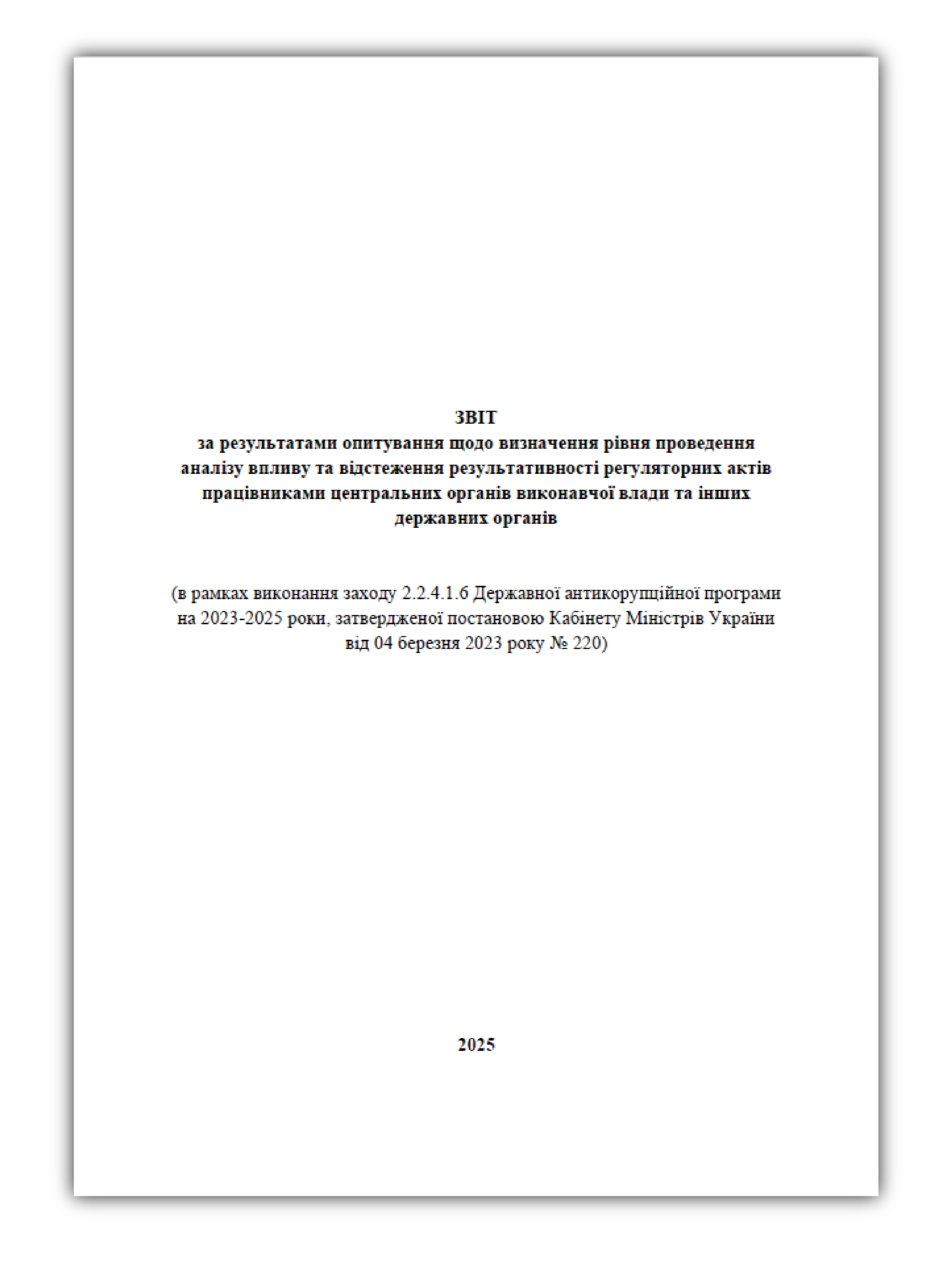 за результатами опитування щодо визначення рівня проведення аналізу впливу та відстеження результативності регуляторних актів працівниками центральних органів виконавчої влади та інших державних органів